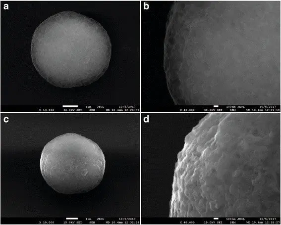 На приведенном электронном микроизображении демонстрируется структура кальцийкарбонатных микрочастиц с нанесением различных по числу слоев полиэлектролитных оболочек, что ярко иллюстрирует технологические возможности новой платформы микрокапсул. Перспективы использования подобного рода гибридных материалов подразумевают применение не только для онкологии, но и в более широком спектре медицинских задач, где необходимы прецизионная доставка и спектральное кодирование препаратов.